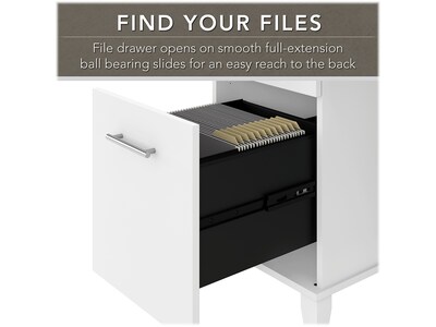 - File drawer opens on full-extension ball bearing slides and accepts legal- and letter-size documents, while box drawer provides storage for office supplies and utensils