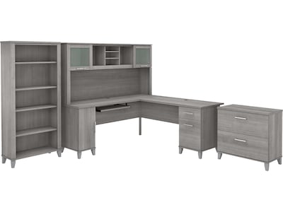Bush Furniture Somerset 72"W L-Shaped Desk with Hutch, Lateral File Cabinet and Bookcase, Platinum Gray (SET012PG)