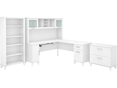 Bush Furniture Somerset 72"W L-Shaped Desk with Hutch, Lateral File Cabinet and Bookcase, White (SET012WH)