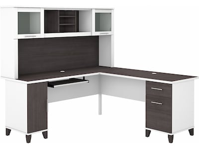Bush Furniture Somerset 72"W L Shaped Desk with Hutch, Storm Gray/White (SET001SGWH)