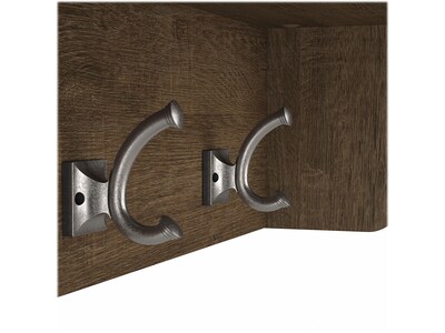 The Bush Furniture Woodland 40W Entryway Bench with Doors and Wall Mounted Coat Rack combines transitional styling and a practical design to offer an ideal storage solution. Have a seat on the durable shoe bench and take a moment to relax as you get ready to head out the door or come home after a long day. The top of the mudroom bench supports 250 pounds, so you can sit down to put on and take off your shoes or set shopping bags down with confidence. Cabinet doors conceal two internal compartments that keep footwear in order and out of sight. The wall shelf includes six coat hooks for hanging jackets, hats, scarves and more. Smaller items like gloves and keys can be stashed neatly inside three open cubby spaces. This Entryway Bench and Coat Rack has been tested to meet Bush Furniture's standards for safety, performance and durability and is backed by a 3 Year Manufacturer's Warranty.