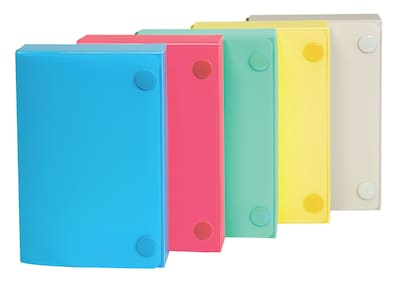 Keep your index cards organized.* Durable polypropylene card case holds up to 100, 3 x 5 inch index cards* Features snap closure and includes 5 dividers and adhesive label tabs* Acid-free, archival quality polypropylene* Assorted colors include seaside blue, sunny yellow, seafoam green, sunset red, and sandy gray