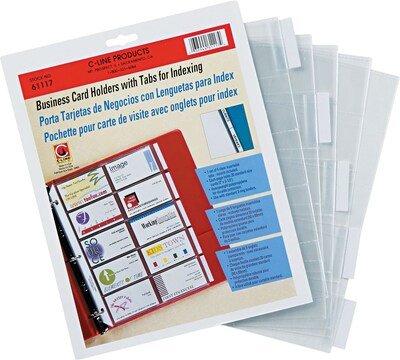 C-Line Business Card Refill Pages with Tabs, 20 Cards, Clear, 11" x 8-1/2", 5/PK