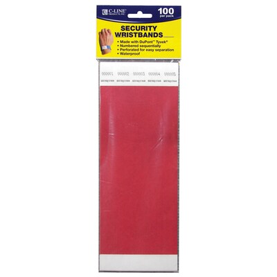 C-Line® CLI89104 Security Wristbands, Red, Pack of 100