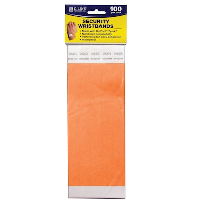 C-Line DuPont Tyvek Security Wristbands, Orange, 100 Per Pack, 2/Pack (CLI89102-2)