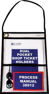 Super heavyweight shop ticket holders allow for easy visibility of 9" x 12" documents and stitched seams ensure long-lasting utility.