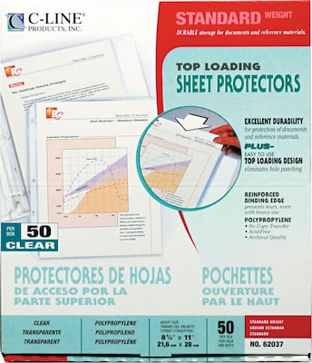 C-Line Standard Weight Sheet Protectors, 11" x 8-1/2", Clear, 50/Box (62037)