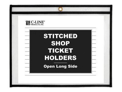 Store and maintain work orders, inventory cards, or other documents with these clear job/shop ticket holders. The strong, rigid clear vinyl lets you read pages and shields contents from dirt or moisture, and the reinforced stitched edge adds durability for long-term use. These C-Line job/shop ticket holders open along the side to remove or insert pages quickly.
