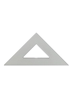 These transparent triangles are made with double bevels in the triangular cut out to allow easy pick up. The professional grade triangles are made of smoke tinted transparent acrylic, the scholastic grade triangles are made of sturdy, clear plastic.