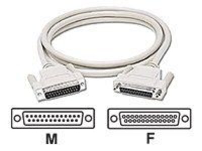 - Connections: one 25-pin DB25 male connector on first end, one 25-pin DB25 female connector on second end