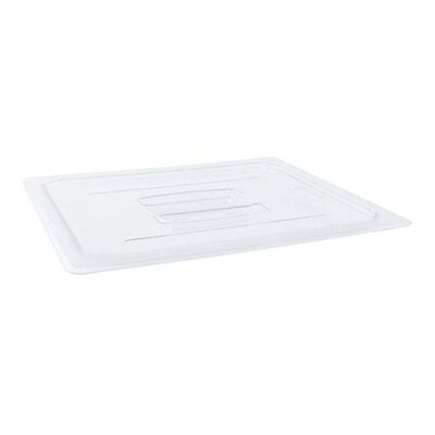 With this 1/2 size clear polycarbonate handled lid, you can rest assured that it will withstand the abuse of daily use, thanks to an easy-to-clean and virtually-unbreakable polycarbonate construction. It's shatter- and scratch-resistant for longevity, and it is designed to withstand temperatures from -40 to 210 degrees Fahrenheit, giving you and your staff flexibility in storage, transport, and use.