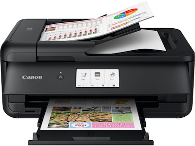 What kind of printer do you need to help you do what you do every day? Probably a printer that does it all with a reasonably sized design, right? The PIXMA TS9520a may be the perfect everyday printer for you. Of course, it's wireless, supports AirPrint and Mopria Print Service, and can print crisp documents, all the way up to 11" x 17". It can also print beautiful photos and even has a built-in SD memory card slot. There is an ADF on top for copying stacks of paper and a 4.3" touch LCD on the front to control it all. Supports auto two-sided printing.