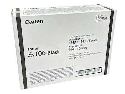 This Genuine OEM Canon Black Toner Cartridge T06 will provide crisp, sharp detailed prints from your Canon imageRUNNER models 643i II, 1643iF, 1643iF II.
