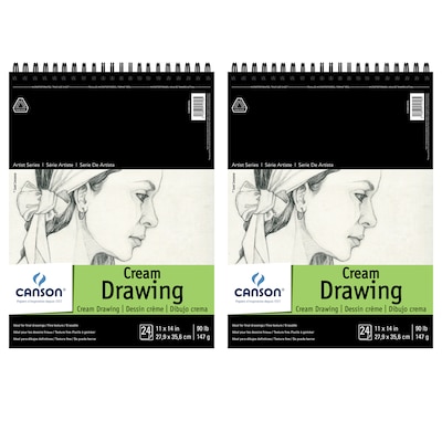 Canson Artist Series 11" x 14" Wire Bound Cream Drawing Sketch Pad, 24 Sheets/Pad, 2/Bundle (MCXC100510974-2)