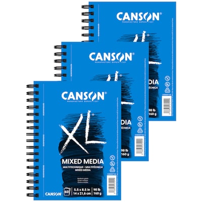 Canson XL Series 5.5" x 8.5" Wire Bound Mixed Media Sketch Pad, 60 Sheets/Pad, 3/Bundle (MCXC40003713406-3)