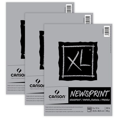 Canson XL Series 9" x 12" Tape Bound Newsprint Sketch Pad, 100 Sheets/Pad, 3/Bundle (MCXC100510949-3)
