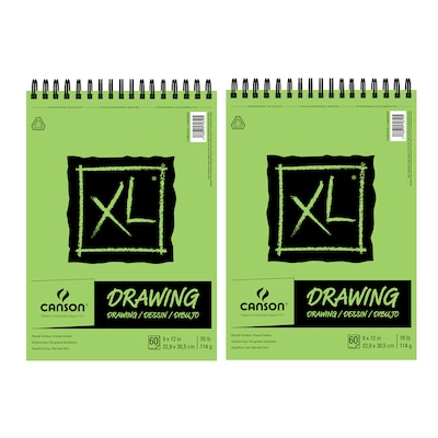 Canson XL Series 9" x 12" Wire Bound Drawing Pad, 60 Sheets/Pad, 2/Bundle (MCXC100510936-2)
