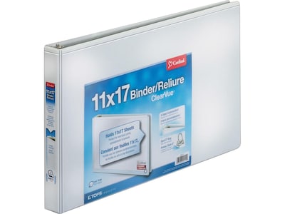 The Cardinal 11 x 17 inch sheets white view binder can hold up to 270 sheets of paper, which allows storage of over 22 years of monthly reports, assuming one sheet per month, or five years of weekly reports. Its durable design ensures that it can be handled regularly without breaking or warping the rings. PVC-free materials used in the binder's construction prevent damage to papers in long-term storage because it has no harmful chemicals to seep into the sheets. The rings in the Cardinal ClearVue 1-inch Slant D-ring binder extend its storage capacity and make it easier to turn the pages quickly without snagging.
