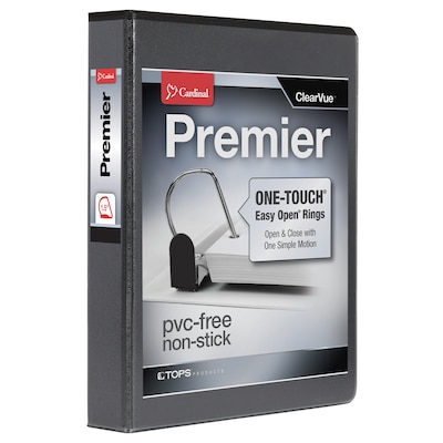 Cardinal Premier Easy Open Heavy Duty 1 1/2" 3-Ring View Binders, D-Ring, Black (10311)