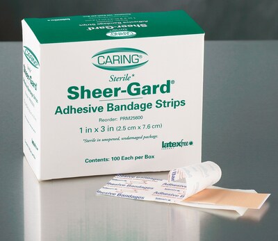 Curad® Sheer-Gard® Adhesive Bandages; Natural, 3" L x 1" W, 1200/Pack