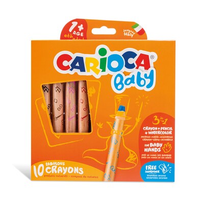 CARIOCA Baby 3-in-1 Washable Sharpener Crayon, Assorted Colors, 10/Set (CRA42818)
