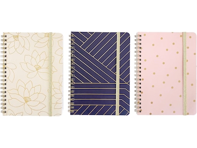 The Keep it in Line personal book from Carolina Pad features a sophisticated style with functionality. This 7" x 5" notebook is perfect to stow in a purse or bag. The gold-tone foil stamped front covers are made of sturdy, heavy board. The nylon-coated gold-tone twin-wire binding keeps the pages secure. Features one interior pocket on the inside front cover. The 80 sheets of college-ruled paper are perforated for easy removal without a mess. The gold-tone fabric closure helps keep all items stored within the notebook secure and can double as a page marker.