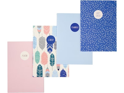 Carpe Diem Feathers 1-Subject Notebooks, 4.1" x 5.8", 16 Sheets, Ruled, Assorted Colors, 4/Pack (9368-CD)