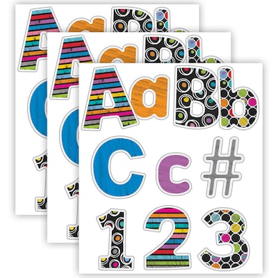 Add modern farmhouse charm to messages on bulletin board, cork board, and other wall décor and classroom decorations using the Carson Dellosa Colorful Chalkboard Bulletin Board Letters Pack! Each 219-piece classroom wall décor pack includes 70 uppercase letters and 87 lowercase letters for bulletin board displays, 20 numbers, and 20 punctuation marks, and 22 symbols in a colorful and chic chalkboard design. Each of the letters, numbers, punctuation, and symbol bulletin board decorations measures 4" tall—the perfect size for alphabet wall decals, party or bulletin board décor, and farmhouse classroom décor. Sold as 3 packs for a total of 657 pieces.