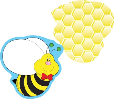 Carson-Dellosa™ Bee cut-out in die cut-shape measures approximately 3" x 3" and is ideal to use on calendars. Cut-out is printed on card stock that has bonus design on back and is sold as 36 pieces per pack.