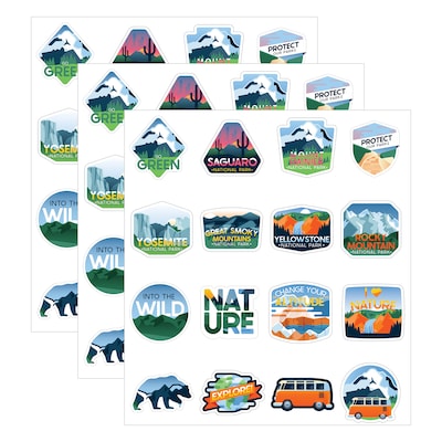 Carson Dellosa's Adventure Vinyl Stickers feature 300 non-removable, 3" x 3" outdoor-themed designs perfect for decorating, crafting, and classroom rewards.