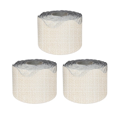 Carson Dellosa Education Linen Rolled Scalloped Borders, 3" x 65', Linen, 3/Bundle (CD-108505-3)