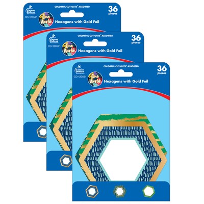 Carson Dellosa Education One World Hexagons with Gold Foil Cut-Outs, 36 Per Pack, 3 Packs (CD-120591-3)