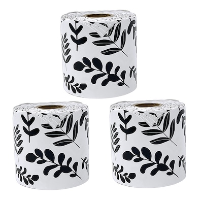 Carson Dellosa Education Rolled Scalloped Borders, 3"x 65', White with Black Leaves, 3/Bundle (CD-108497-3)
