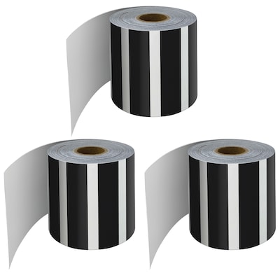 Carson Dellosa Education Rolled Straight Border, 2-1/4"x 65', Black and White Vertical Stripes, 3/Bundle (CD-108476-3)