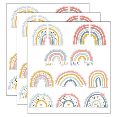 Decorate your learning space with rainbow classroom décor using the Carson Dellosa We Belong Boho Rainbow Bulletin Board Cutouts—perfect for white board, cork board, bulletin board, and boho classroom décor. Each bulletin border decorations pack includes 36 assorted rainbows in a variety of designs ranging in size from 4.1" x 5.75" to 6.7" x 4.4". Printed on one-sided durable cardstock paper, each piece of rainbow décor piece is reusable and can be laminated. Sold as 3 packs for a total of 108 cut-outs.