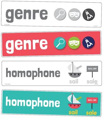 - Includes 60 language arts vocabulary words with clear, visual definitions
