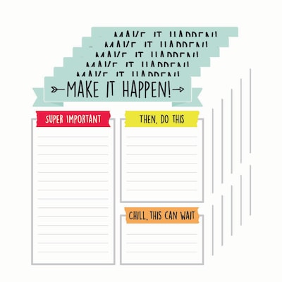 The 50-sheet Aim High notepad helps teachers stay organized and motivated. This stylish to-do list features three sections to help prioritize tasks and a "Make it Happen" banner across the top for inspiration. Teachers can never have enough notepads, and our stationery selection is second to none. With a variety of colors, themes, shapes, and designs, our acid-free and lignin-free notepads provide fun ways to write notes, play games, and create to-do lists. Make sure to view our other Aim High products to create a cohesive and contemporary classroom theme. Sold as a pack of 6 notepads.
