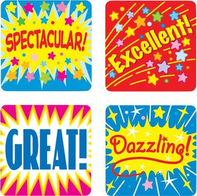 Carson-Dellosa Positive words motivational stickers for all grades are acid and lignin free. Stickers measuring 1" x 1" are a small, fun way to brighten student's day, sold as 120 stickers per pack.