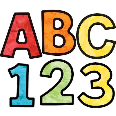 Create displays with Celebrate Learning Watercolor 4-inch EZ Letters combo pack. This 219-piece pre-punched set includes these characters:-70 uppercase letters-87 lowercase letters-20 numbers-20 punctuation marks-22 symbolsAll characters feature watercolors to help your message stand out! Take your displays from dull to dazzling with Carson-Dellosa’s EZ Letters. These letters add a stylish touch to any classroom, and you can use them for any grade. Make sure to view other Celebrate Learning products to create a cohesive classroom theme.