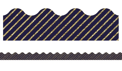 Carson-Dellosa Sparkle and Shine Gold Glitter and Navy Stripe Scalloped Borders, 13 Strips per Pack (108322)