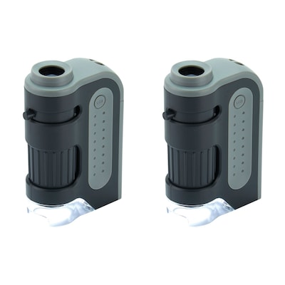 These two packs of MM-300 MicroBrite Plus from Carson Optical are powerful 60-120x power Magnification Pocket Microscopes with an extremely lightweight and portable design. These Pocket Microscopes feature a built-in LED light that provides a bright, clear image and a rubberized eyepiece for comfortable viewing. The MicroMax LED fits easily in your pocket so you can bring it with you anywhere.