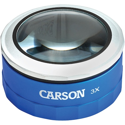This LED lighted dome magnifier contains a 3x power magnification with a crystal clear and scratch-resistant glass lens. The glass lens diameter is 2-3/4 in. The MagniTouch features a built-in twist action, adjustable focusing ring. This stand magnifier is LED lighted with 3 super bright lights. What makes this magnifying loupe extra unique is that the LED lights are touch-activated! It is the ideal lighted dome magnifier for reading, low vision, hobbies, crafts, examining coins, currency, stamps, Inspection, print, film, electronics, blue print, plants, rocks, wildlife, nature and so much more! Carson strives to make sure its customers are 100% satisfied with the quality of their magnifiers. They are backed with a Lifetime Limited Warranty!