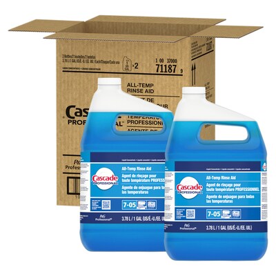 Cascade Professional All-Temp Dishwasher Rinsing Agent, Unscented, 128 oz., 2/Carton (71187)