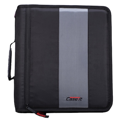 Be prepared for class by storing notes and other materials in this sturdy 2-inch black zipper binder. Two inside pockets offer quick access to loose pages and other accessories, while the zipper closure secures contents, keeping them from getting lost or damaged. This Case-it zipper binder features a handle and shoulder strap, so you can easily carry it with you.