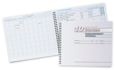 Ten-column disbursement journal tracks checks, fund transfers, withdrawals, automatic payments and deposits. Handy spiral binding lets book lie flat when open.
