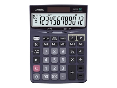 Check up to 150 steps and make corrections without having to start over. A large 12-digit display offers easy viewing, while the decimal and rounding selectors let you customize the operation to meet a range of business needs. Independent memory and a grand total key let you solve more advanced problems without having to write numbers down. With a compact size, this Casio desk calculator fits neatly in a drawer when not in use.