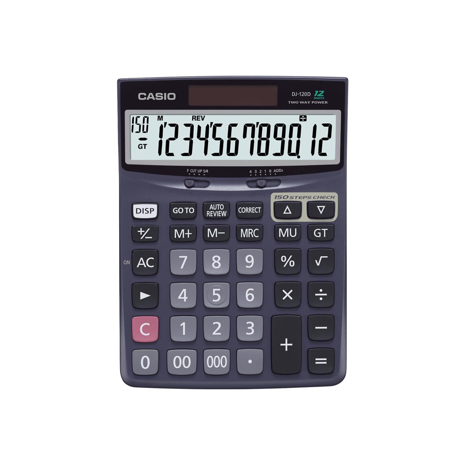 Casio 12-Digit Battery/Solar Powered Calculator, Black (DJ120D)