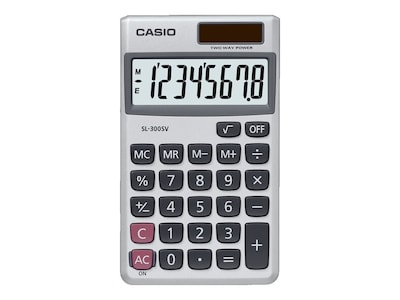 Casio SL300SV 8-Digit Battery/Solar Powered Basic Calculator, Silver