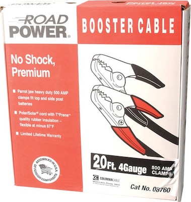 CCI® TPE Jacket automotive booster cable in black color comes with parrot jaw clamp and is made of plated steel with PVC insulation for longer durability. Cable has durable 4 gauge copper conductor and has a current rating of 500 A.