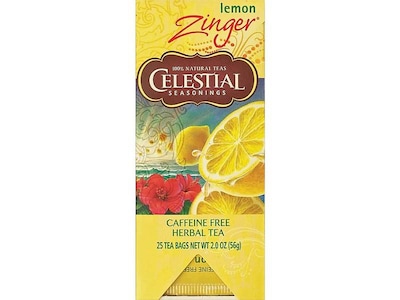 Delight office visitors with Celestial Seasonings lemon zinger herbal tea for a refreshing drink. Each box of Celestial Seasonings lemon zinger herbal tea comes with 25 bags to serve guests or staff.